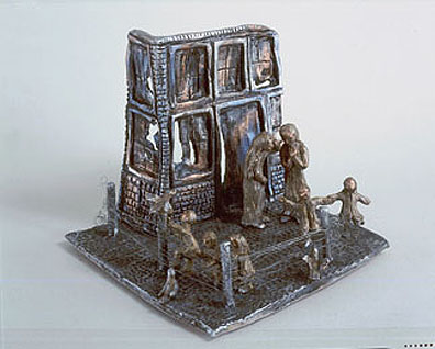 ![]() The Ghetto Birds have landed just outside of the wire that surrounds in the people of the ghetto. The children do what children do. They run to see the birds, and to play. The mothers, however, already sense what is to come next. They huddle together and cry. It is a very sad day for them. Description: Terra Cotta